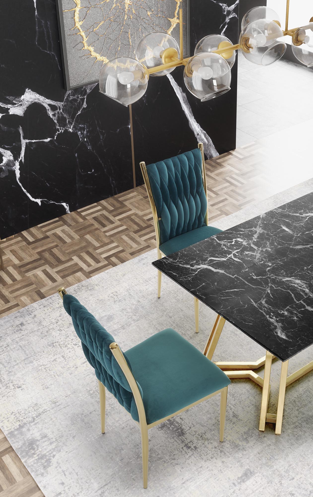 Stalo spalva: stalviršis - juoda/ marmurinė, kojos aukso spalvos.