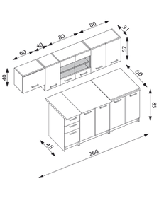 Virtuvės komplektas VIOLA 260, virtuves spinteliu komplektas.